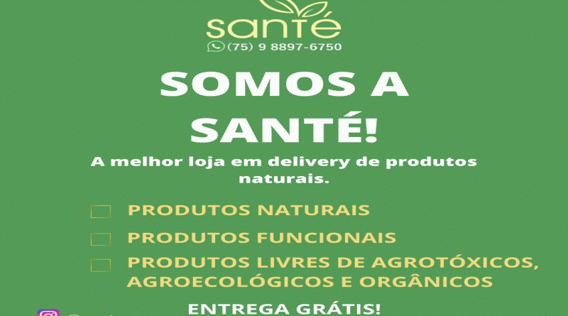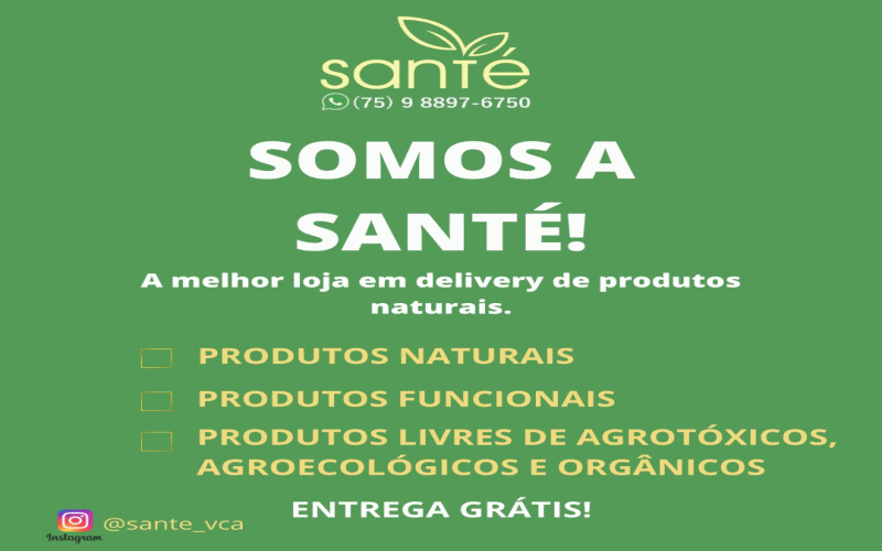 A Santé conta com produtos naturais, funcionais, agroecológicos e orgânicos, e livres de agrotóxicos em Valença. A loja faz entrega Delivery e grátis. Mais informações em 75 98897-6750 e instagram @sante_vca.