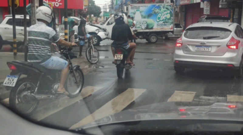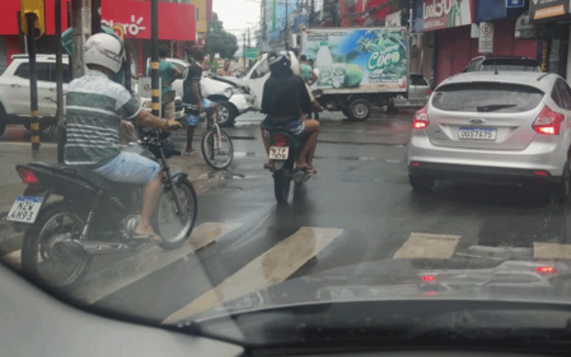 De acordo com informações de transeuntes, o caminhão estaria vindo na contramão, se chocando com o veículo na sinaleira.