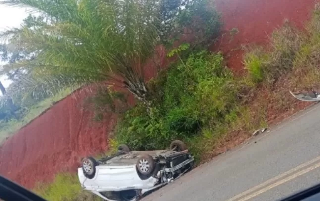 Acidente entre Valença a Nazaré, veículo capota na BA-001