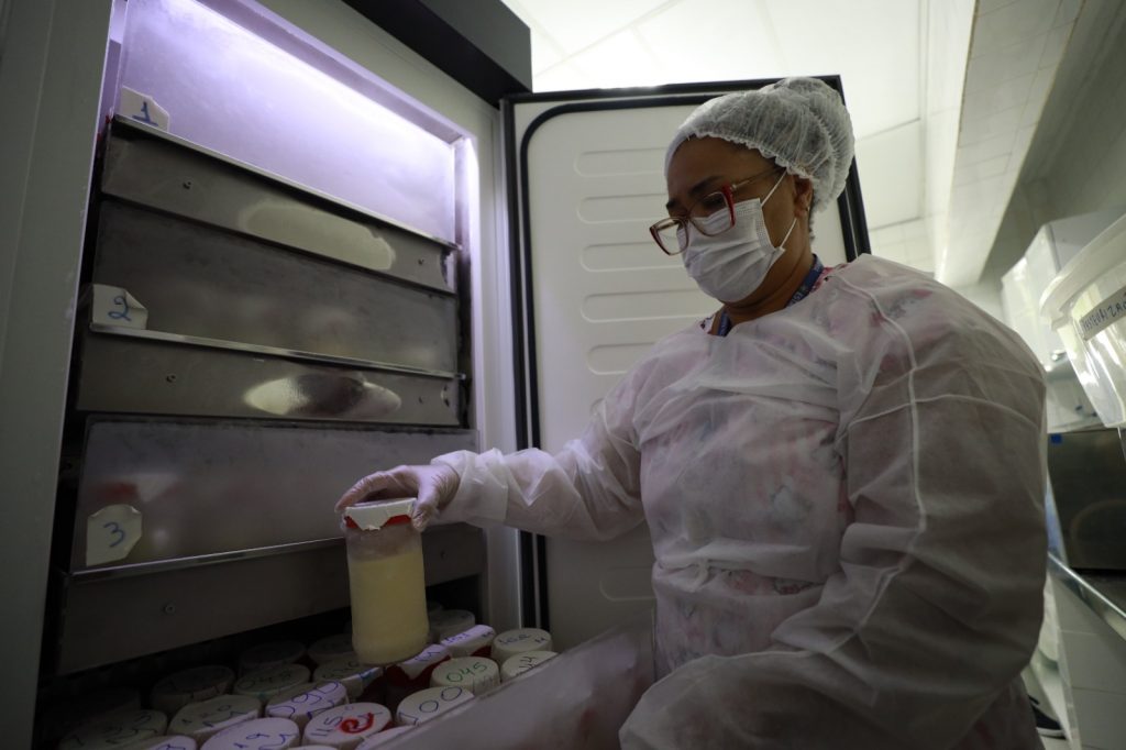 O leite chega até o banco já congelado. Depois passa por um processo de pasteurização, um tratamento térmico de aquecimento e resfriamento. A amostra passa por um teste microbiológico e se der negativo, o leite está apto para o bebê. “É todo um cuidado higiênico sanitário para que o líquido esteja seguro para o consumo”, pontuou Nilma Dourado.