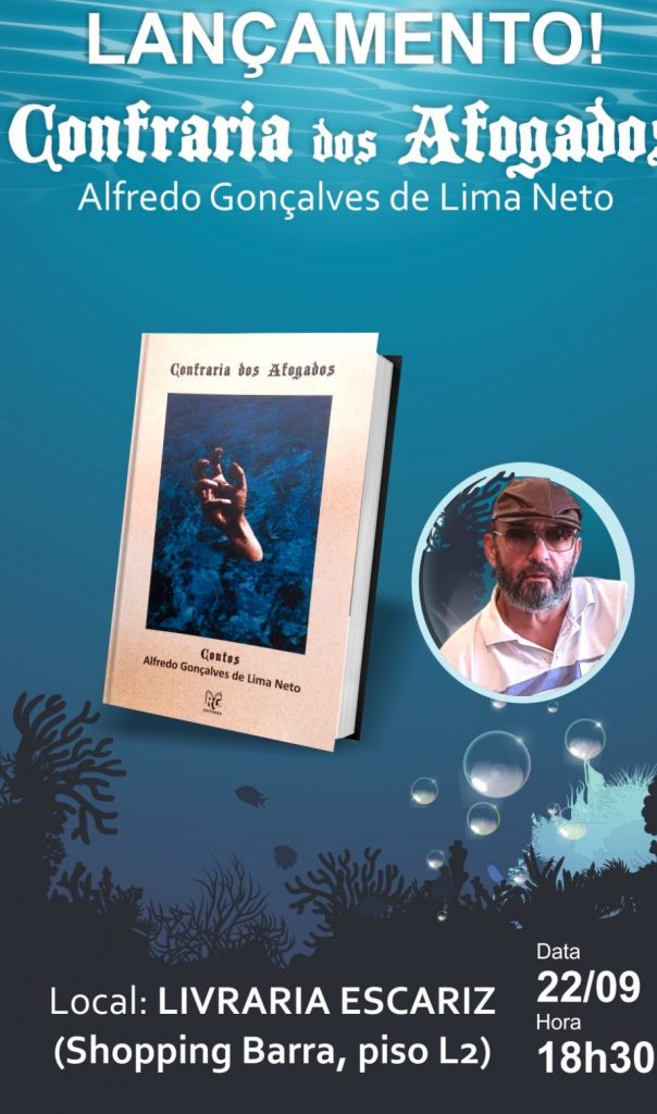 O médico e escritor Alfredo Gonçalves estará lançando hoje (22), às 18h30m, na Livraria Escariz, no Shopping Barra, piso L2 o seu livro “Confraria dos Afogados.Alfredo Gonçalves de Lima Neto é natural de Salvador, Bahia e reside em Valença desde 1986 onde exerce a profissão de médico. Escritor, é autor de mais de duas dezenas de livros no gênero de romance, contos e poesia.É membro e fundador da Avela (Academia Valenciana de Educação, Letras e Artes), membro da Aler (Academia de Letras do Recôncavo), Abrol (Academia Brasileira Rotária de Letras) e da UBE (União Brasileira de Escritores).Estará lançando na capital baiana o seu 26° livro: Confraria dos Afogados.