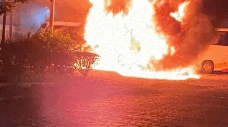 Segundo informações, o incêndio ocorreu por volta das 23h. Imagens que circulam nas redes sociais mostram momento em que as chamas consumiram os veículos que estavam estacionados no local.