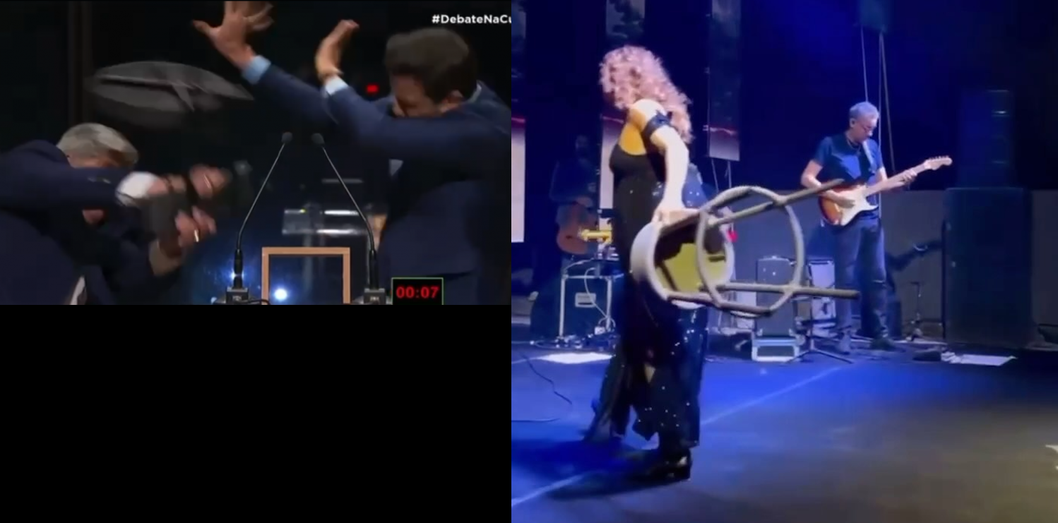 Parece que arremessos estão em alta nos últimos dias! Dois momentos ganharam notoriedade: o debate da TV Cultura, em que o apresentador e candidato José Luiz Datena arremessou uma cadeira no opositor, Pablo Marçal. O outro foi a cantora Daniela Mercury, que não curtiu um banco no meio do seu palco, e lançou para o fundo do espaço.