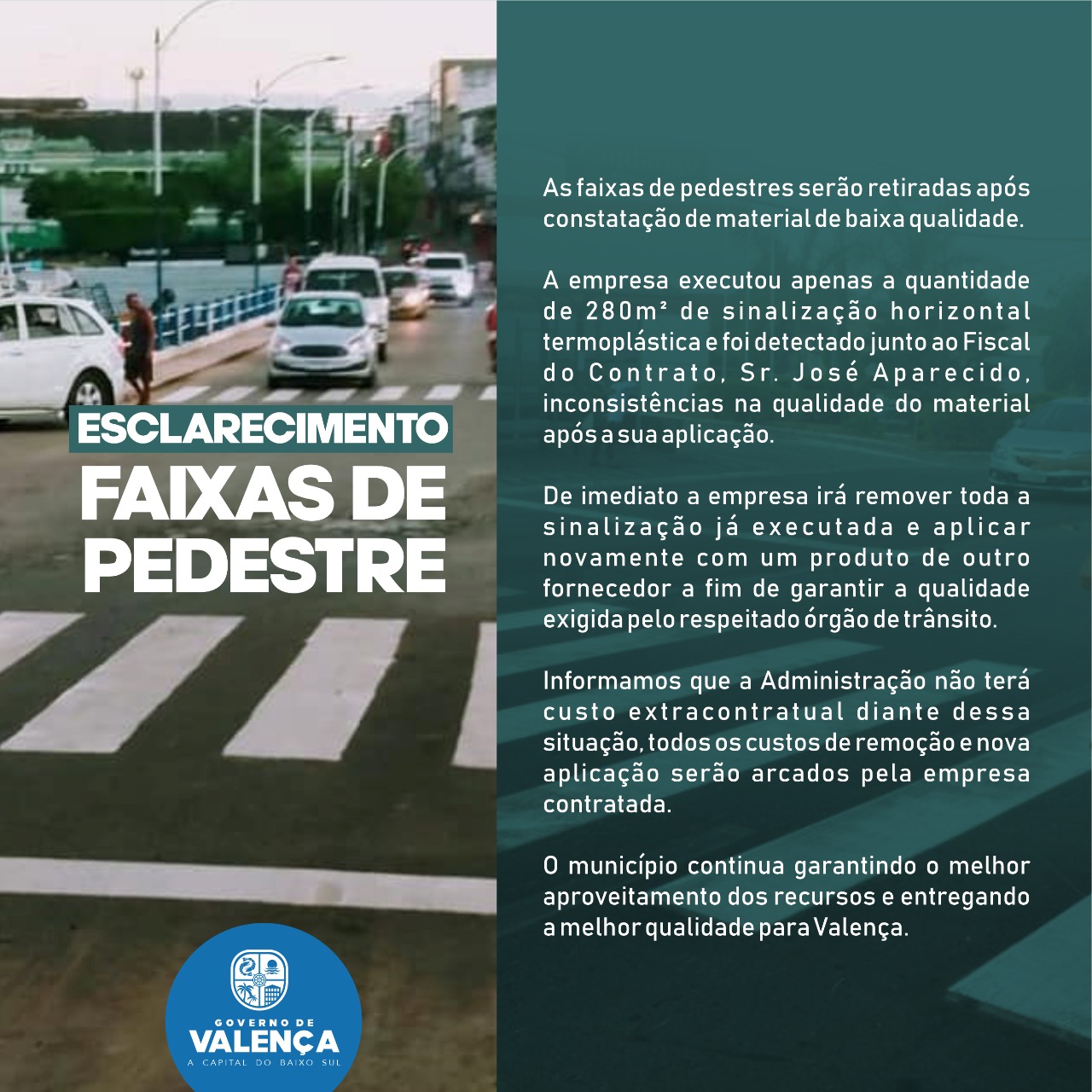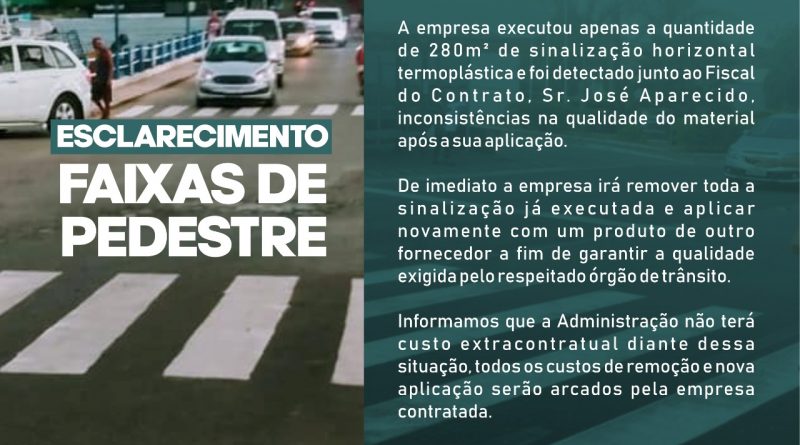 As faixas de pedestres serão retiradas após constatação de material de baixa qualidade.