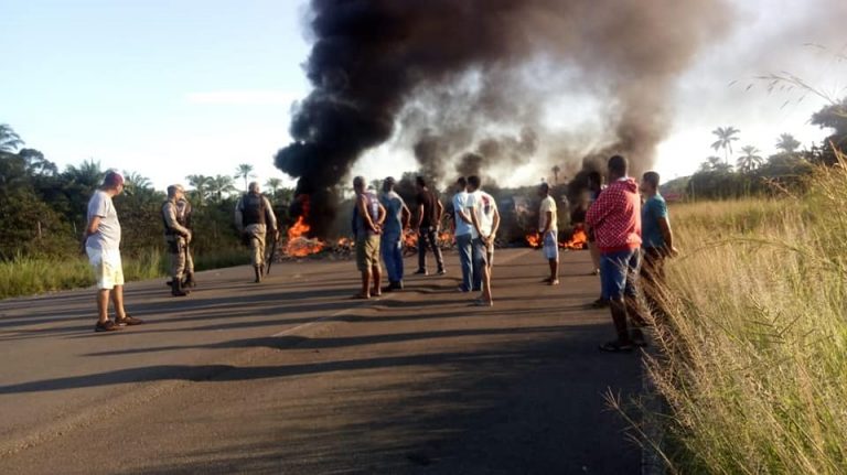 BA-001 é bloqueada por manifestantes que cobram melhorias nas estradas que dão acesso a Jaguaripe