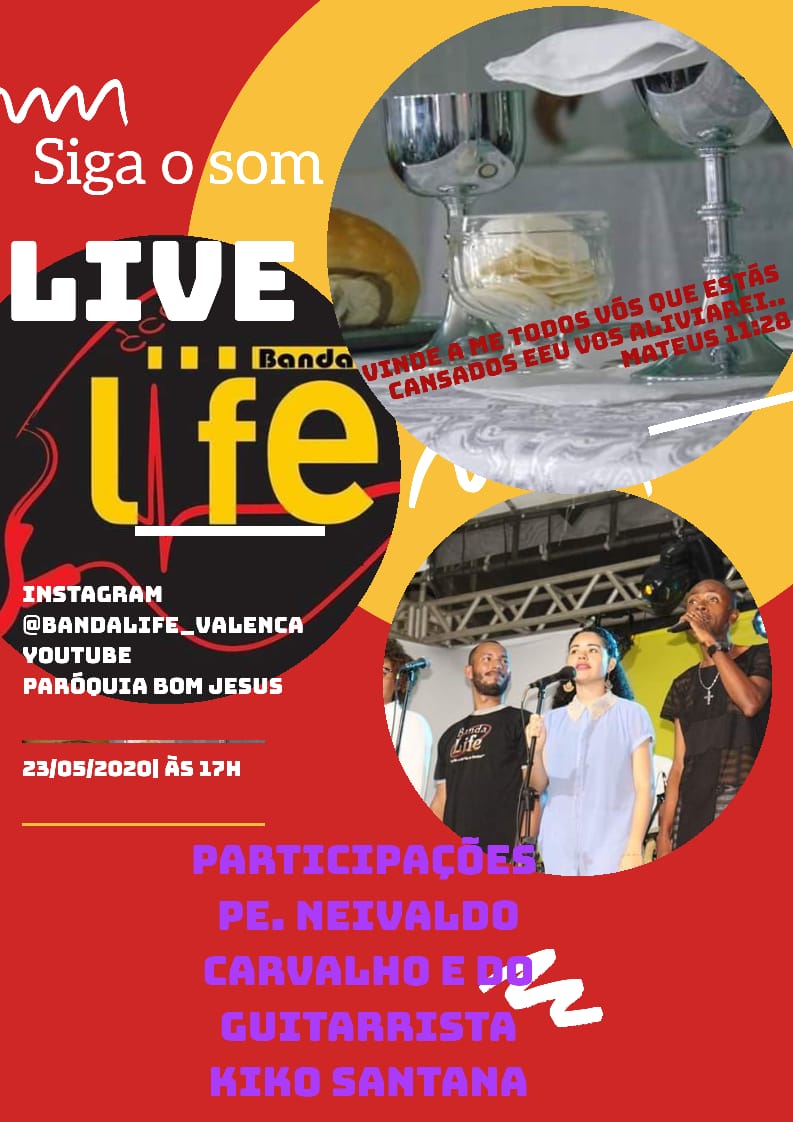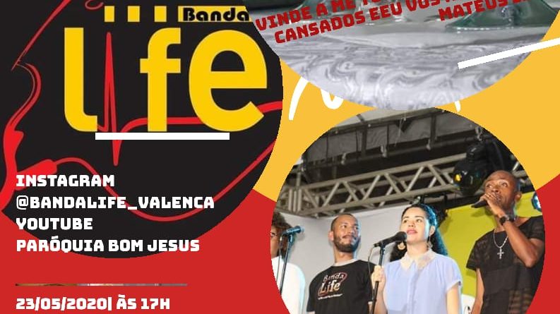 Para acompanhar acesse o Instagram – https://www.instagram.com/bandalife_valenca/  ou o YouTube da Paróquia Bom Jesus – https://www.youtube.com/channel/UC3lV9Ne3cIhIP2BGd84HqBw