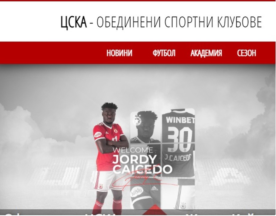 No site oficial do CSKA Sofia, a publicação informa que Jordy Caicedo realizou exames médicos e já é oficialmente jogador do clube.