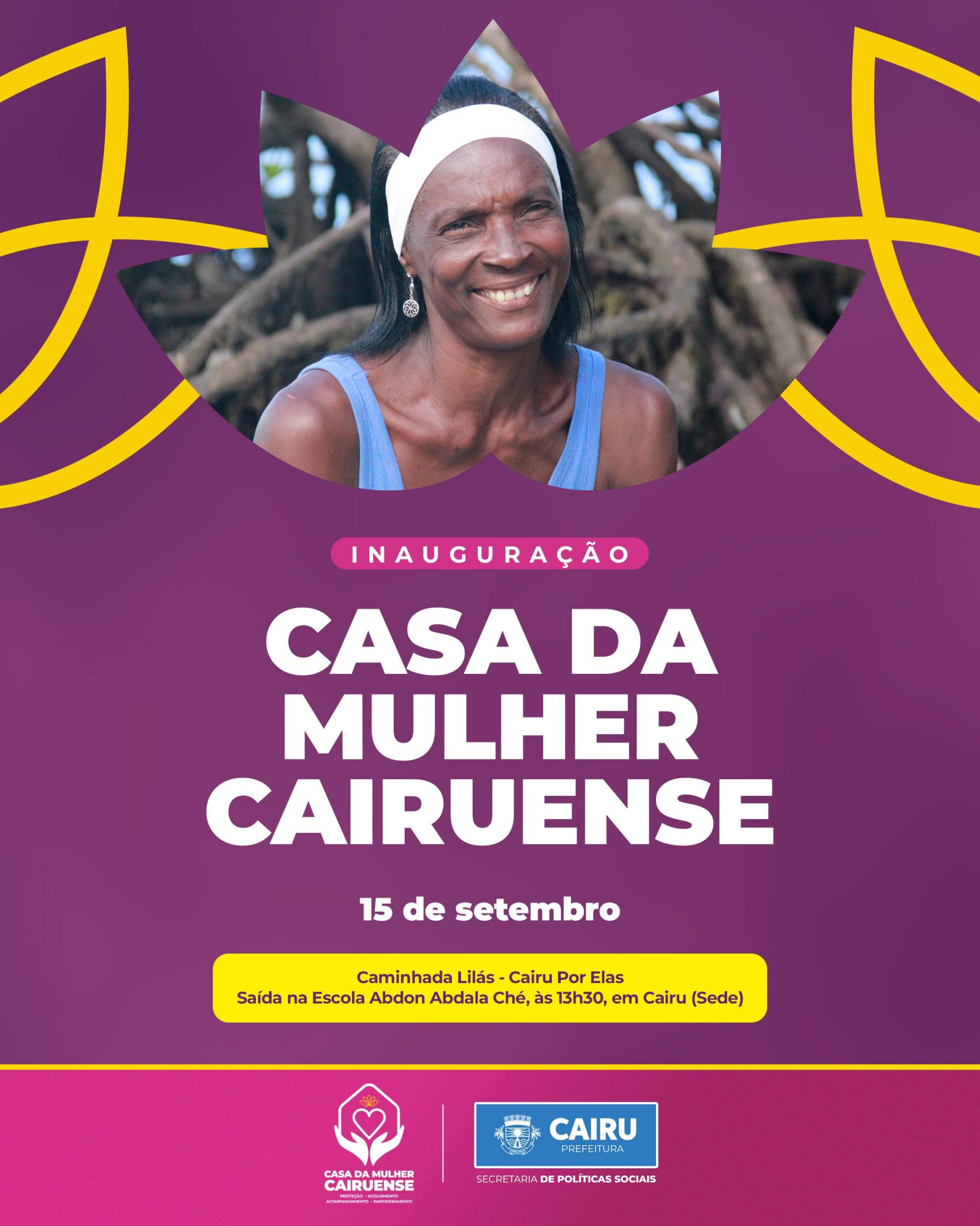 HISTÓRIA DO COMBATE à violência contra a mulher vai mudar de patamar, em Cairu. Nesta sexta-feira 15 será realizada a 1ª Caminhada Lilás Cairu por Elas e a inauguração da Casa da Mulher Cairuense Professora Cecília Pancho Crispim. A saída da caminhada será às 13h30, da Escola Abdon Abdala Ché, na sede do município.