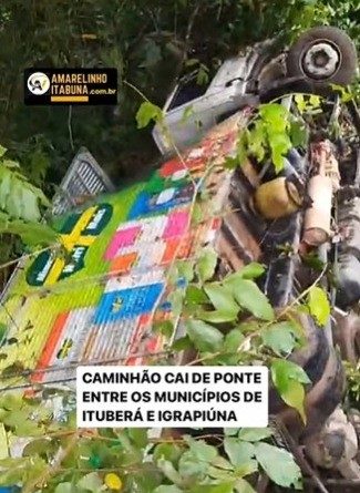 Na manhã deste sábado, dia 01/06, por volta das 4 horas, ocorreu um acidente na ponte entre os municípios de Ituberá e Igrapiúna, quando um caminhão baú, caiu da ponte da Vila 4, imediações da entrada que dá acesso à Cachoeira da Pancada Grande. Segundo informações, chovia muito no momento do acidente o que pode ter contribuído.