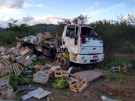 Um caminhão carregado de bananas tombou na tarde desta sexta-feira (18), na BA que dá acesso a cidade de Jequié. O motorista natural do município de Valença, se perdeu em uma curva causando o acidente. A carga se espalhou na lateral da rodovia. O motorista teve ferimentos leves e foi encaminhado para a Unidade de Pronto Atendimento da cidade. A polícia militar foi acionada para dar suporte até a retirada do veículo.
