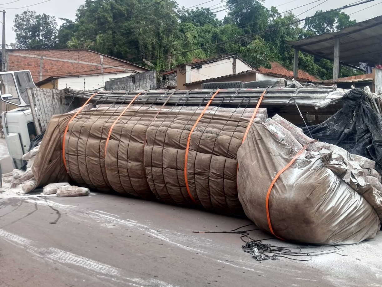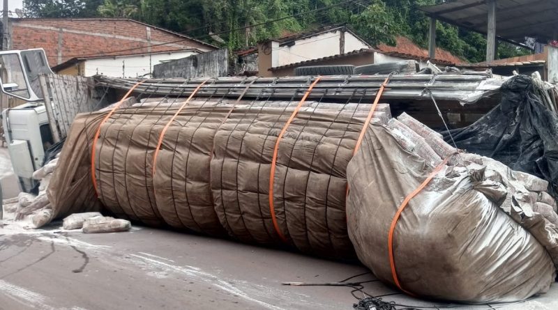 Caminhão tomba na ladeira do Pitanga em Valença