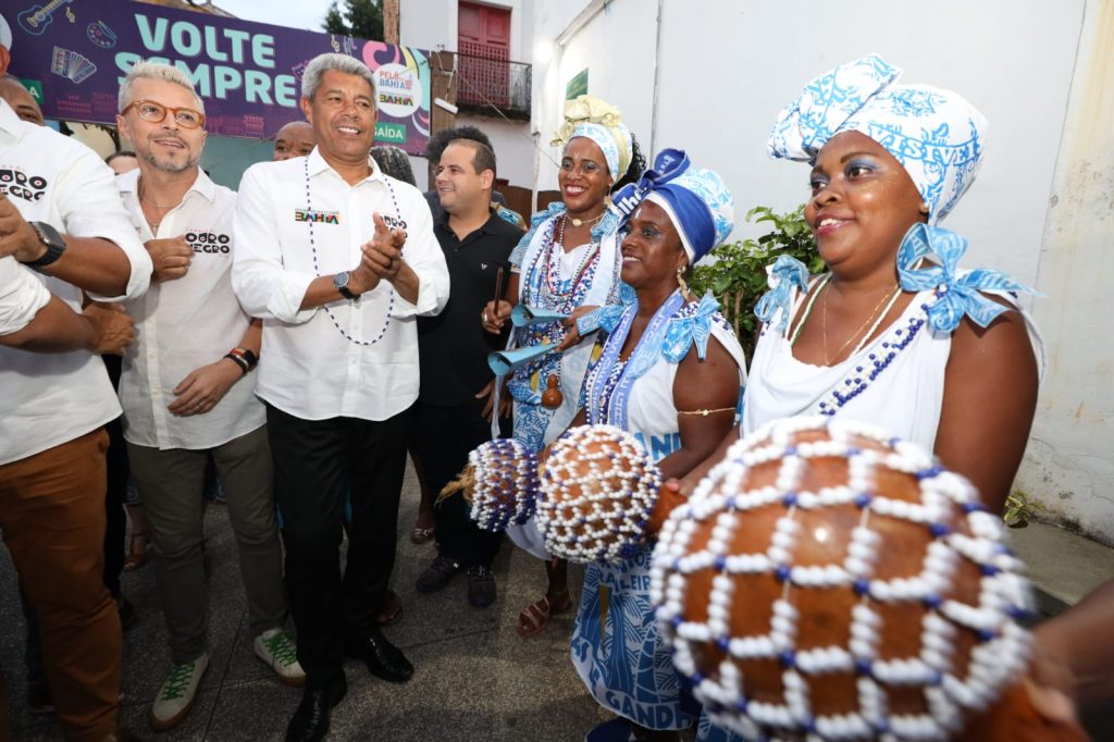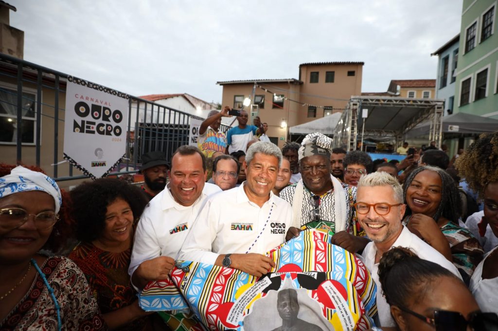 Ao som de Malê Debalê, Grupo Quixabeira e Comemanche do Pelô, o governador Jerônimo Rodrigues, acompanhado do vice-governador e coordenador do Carnaval da Bahia, Geraldo Júnior, e de secretários de estado, lançou oficialmente na noite desta terça-feira (16), o Carnaval Ouro Negro 2024, no Largo Quincas Berro D’Água, no Pelourinho, em Salvador.
