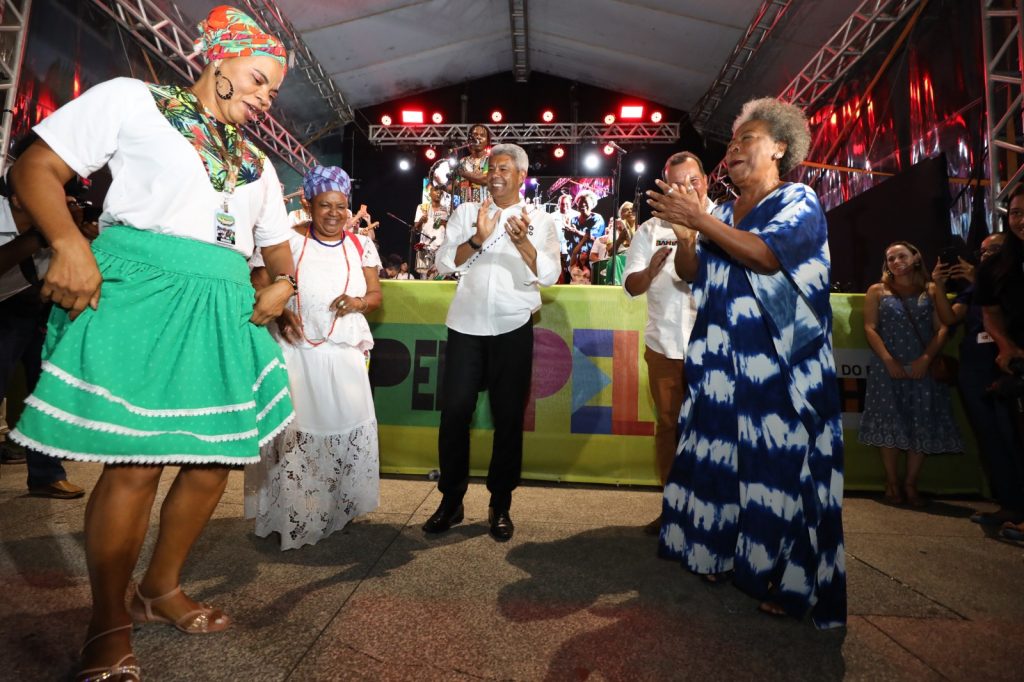 Os secretários da cultura Bruno Monteiro, e da promoção da igualdade racial Ângela Guimarães, responsáveis pelo programa de incentivo, apresentaram as novidades para este ano, que terá o maior investimento da história do Ouro Negro no estado, com cerca de R$ 15 milhões destinados às manifestações culturais da diáspora na Bahia – o dobro do aportado em 2023. Na ocasião, o governador e o vice-governador entregaram oficialmente o Selo do Carnaval Ouro Negro 2024.