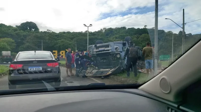 De acordo com a apuração da TV Santa Cruz, o veículo estava carregado de argamassa e cerâmica. Com o impacto, o material ficou espalhado pelo canteiro central.