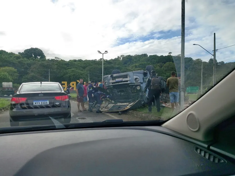 Caso aconteceu na manhã desta segunda-feira (8), no município de Itajuípe. Uma carreta tombou na manhã desta segunda-feira (8), em trecho da BR-101, na entrada do município de Itajuípe, no sul da Bahia. O motorista, que ainda não foi identificado, ficou preso ás ferragens, mas teve apenas ferimentos leves.