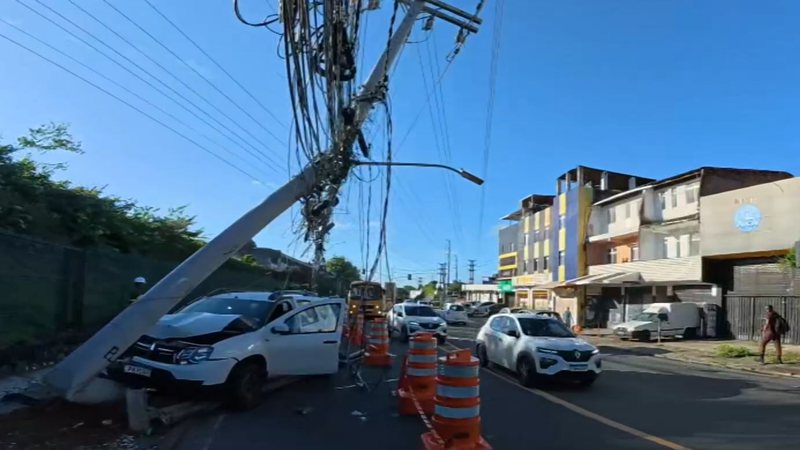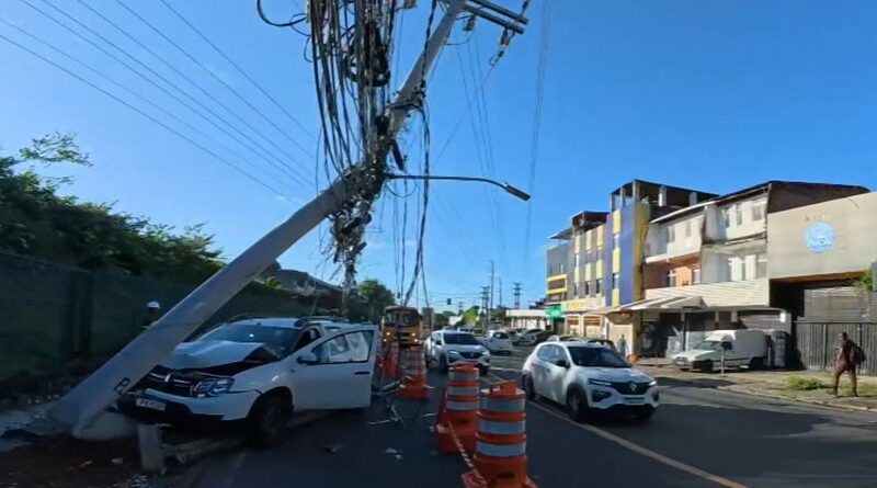 Um motorista perdeu o controle do veículo e bateu em um poste na Avenida São Rafael, em Salvador, por volta das 5h20 desta quinta-feira (13). O impacto da colisão foi tão forte que derrubou a estrutura e deixou parte da região sem energia elétrica.