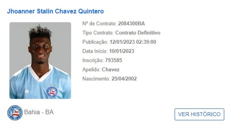 Chávez já está regularizado e liberado para jogar pelo Bahia — Foto: Reprodução/CBF