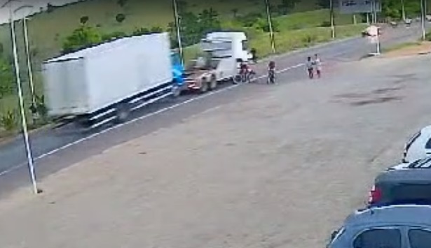 Nas imagens é possível ver um grupo de ciclistas trafegando na rodovia e em um determinado momento a vítima se desequilibra e é atingido por um caminhão.