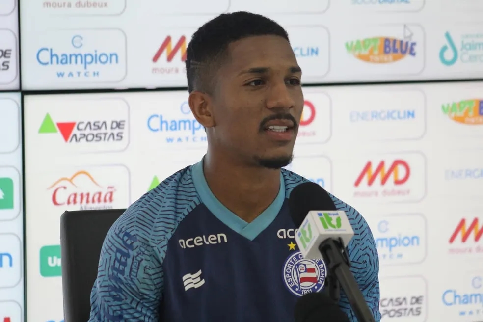 Davó em entrevista coletiva no Bahia — Foto: Felipe Santana/EC Bahia