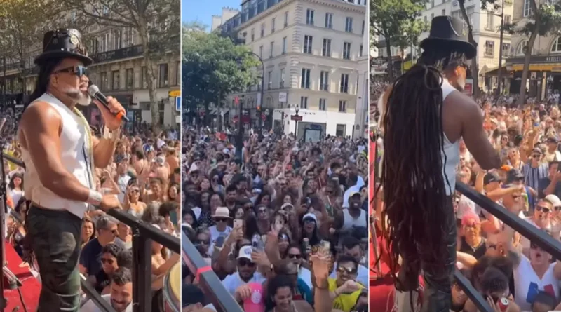 Com trio elétrico, Carlinhos Brown faz carnaval e arrasta multidão pelas ruas de Paris: ‘obrigado axé’