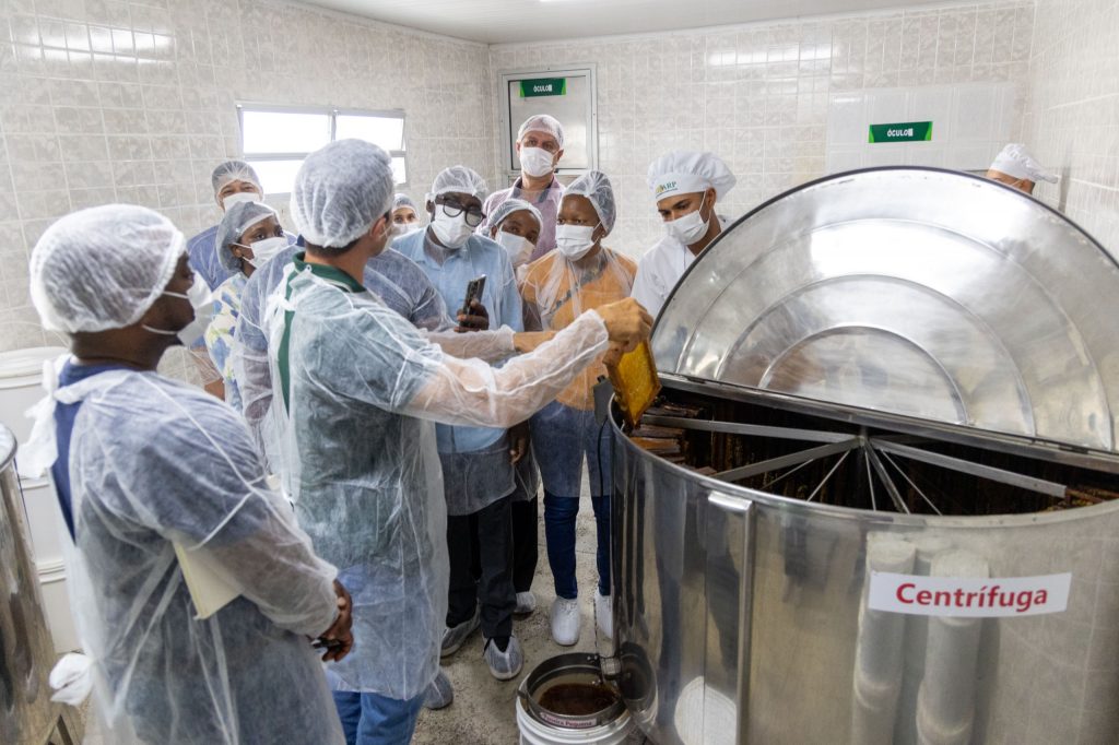 Outro destaque da missão foi a visita à Cooperativa dos Apicultores de Ribeira do Pombal (Cooarp), onde foram discutidos os métodos de produção e beneficiamento de mel, além das estratégias de comercialização adotadas pela cooperativa. A Cooarp, que conta com 268 apicultores familiares cooperados, tem se consolidado como uma das principais fornecedoras de mel na Bahia, com atuação tanto no mercado nacional quanto no internacional. Com um investimento de R$ 3,8 milhões, a cooperativa ampliou as instalações e profissionalizou a produção, garantindo acesso a mercados cada vez mais exigentes.