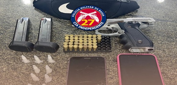 Ainda conforme relatos, após abordagem foi encontrado, droga, arma, munições e outros objetos.