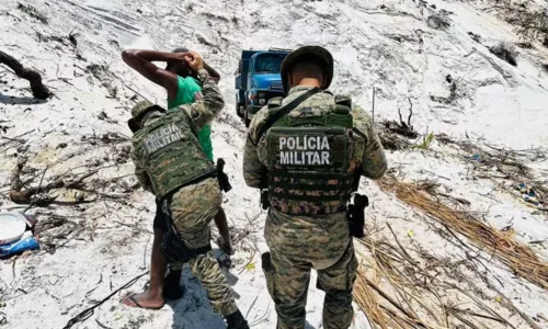Dois homens foram presos em flagrante, nesta sexta-feira (2), extraindo areia ilegalmente em Jauá, na cidade de Camaçari, na Região Metropolitana de Salvador.