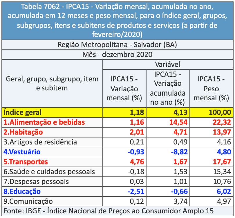 No ano de 2020, porém, os alimentos (14,54%) tiveram o maior aumento em 18 anos, desde 2002 (16,96%), e exerceram de longe a maior pressão inflacionária na Região Metropolitana de Salvador.