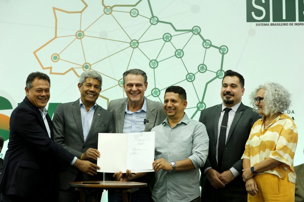 Da Bahia, assinam seis consórcios: de Desenvolvimento Sustentável do Alto Sertão, de Caetité; de Desenvolvimento Sustentável do Território Piemonte Norte do Itapicuru, de Senhor do Bonfim; Intermunicipal Bacia do Rio Corrente, de Santa Maria da Vitória; de Desenvolvimento Sustentável do Território Bacia do Paramirim, de Caturama; de Desenvolvimento Sustentável do Território Portal do Sertão, de Feira de Santana; e do Território do Recôncavo, de Castro Alves. “Isso significa uma geração de emprego, de renda, valorização do homem e da mulher do campo, dos produtos de origem animal. Então, isso garante também que produtos com a qualidade melhor cheguem até o consumidor”, garantiu o presidente da Federação dos Consórcios Públicos da Bahia, presidente do Consórcio do Recôncavo e prefeito de Castro Alves, Thiancle Araújo, lembrando que essa certificação confere mais força aos consórcios, por meio dos Serviços de Inspeção Municipal.
