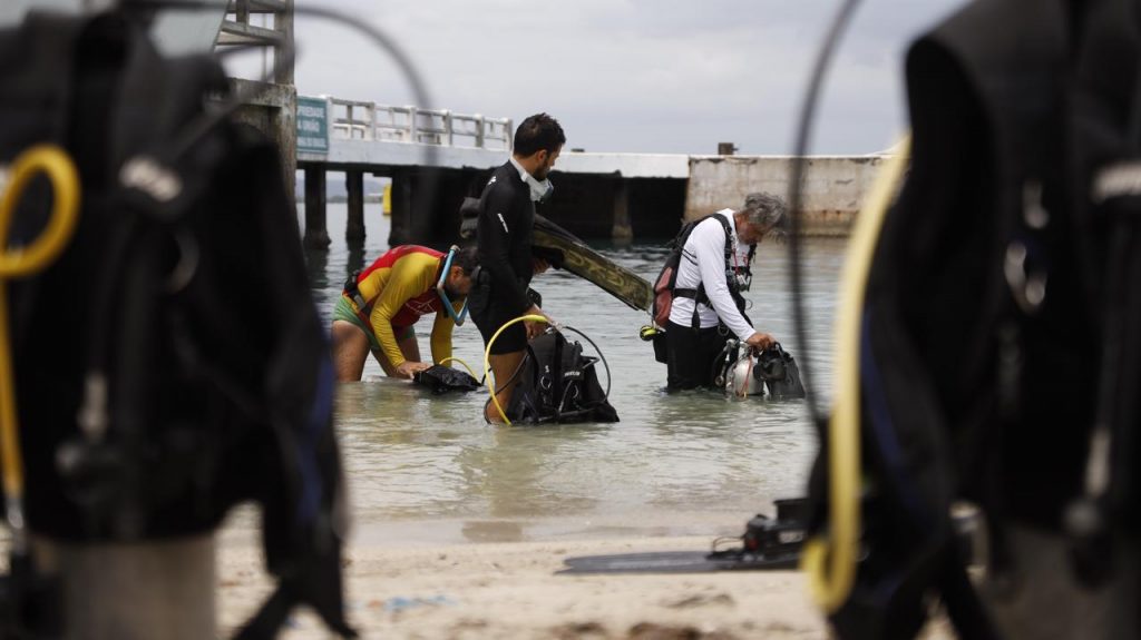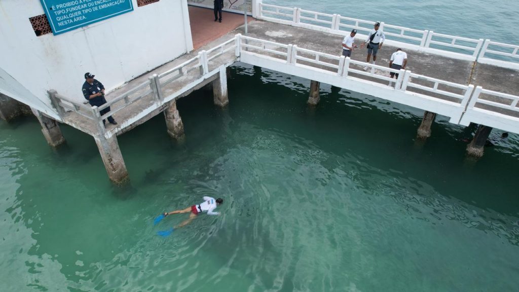 Uma das pesquisadoras do grupo Tatiane Aguiar, da Universidade Federal da Bahia (UFBA), apontou para resultados no manejo com sal azedo e na remoção manual. “A gente começou o experimento no dia 22 de dezembro. A gente veio aqui com sete dias, já analisamos alguns resultados, e agora, com 15 dias, podemos adiantar que o tratamento com sal azedo e o tratamento manual, de raspagem, são os mais efetivos até agora. Onde a gente raspou, está liso, como estava quando a gente terminou de fazer, e o sal azedo está, inclusive, limpando as pilastras. São resultados preliminares, não são resultados conclusivos, porque a checagem será de 30 dias”, compartilhou a pesquisadora, após mergulho e averiguação das amostras.