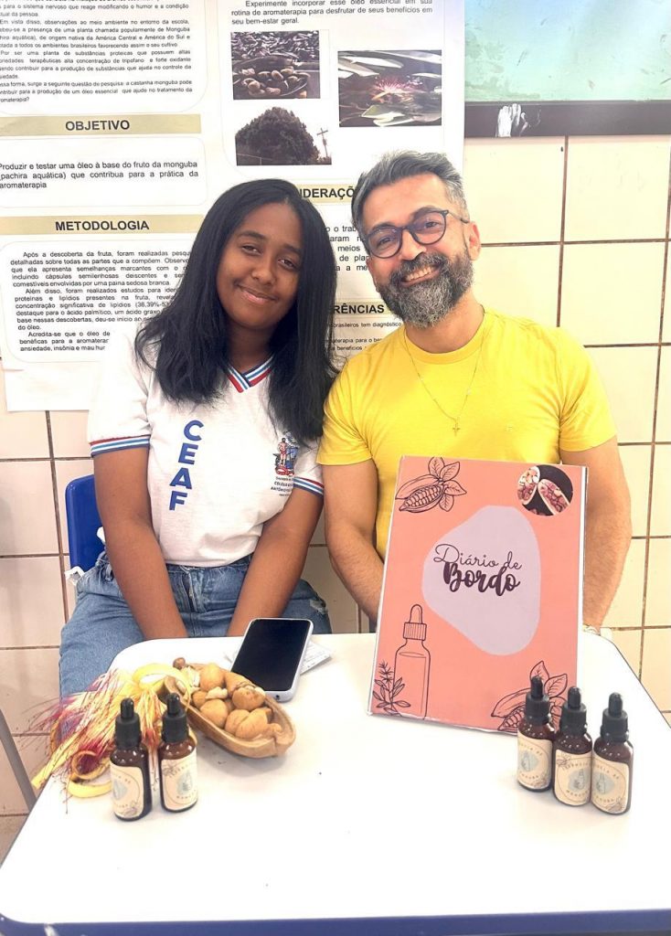 Outro finalista é o projeto “Aromas da terra: explorando o potencial terapêutico do óleo essencial do Monguba (pachira aquatica)”, desenvolvido pelos estudantes Bruno Souza Brito, 16, e Taynnara Gabryelle da Silva Rocha, 16, sob a orientação do professor Janilton Almeida, do Colégio Estadual Antônio Figueiredo, localizado em Ibiassucê. O projeto explora as propriedades terapêuticas do óleo essencial da Monguba, uma planta nativa, trazendo contribuições significativas para a área de aromoterapia e valorizando a biodiversidade local. “Foi muito gratificante saber que o projeto foi selecionado, até porque ele foi muito elogiado. Minha expectativa para a fase presencial é apresentar o melhor trabalho possível”, ressaltou Taynnara.