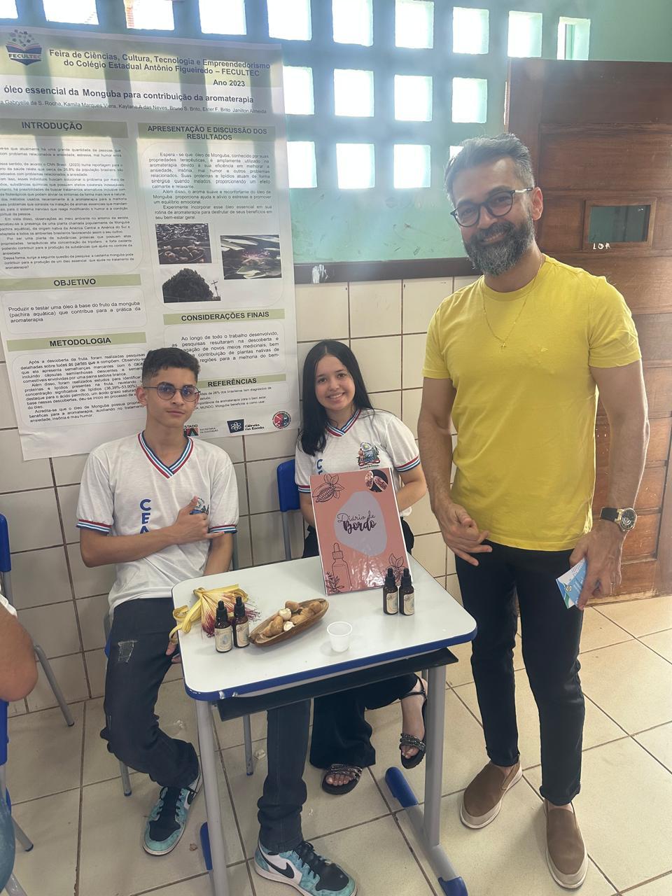 Outro finalista é o projeto “Aromas da terra: explorando o potencial terapêutico do óleo essencial do Monguba (pachira aquatica)”, desenvolvido pelos estudantes Bruno Souza Brito, 16, e Taynnara Gabryelle da Silva Rocha, 16, sob a orientação do professor Janilton Almeida, do Colégio Estadual Antônio Figueiredo, localizado em Ibiassucê. O projeto explora as propriedades terapêuticas do óleo essencial da Monguba, uma planta nativa, trazendo contribuições significativas para a área de aromoterapia e valorizando a biodiversidade local. “Foi muito gratificante saber que o projeto foi selecionado, até porque ele foi muito elogiado. Minha expectativa para a fase presencial é apresentar o melhor trabalho possível”, ressaltou Taynnara.