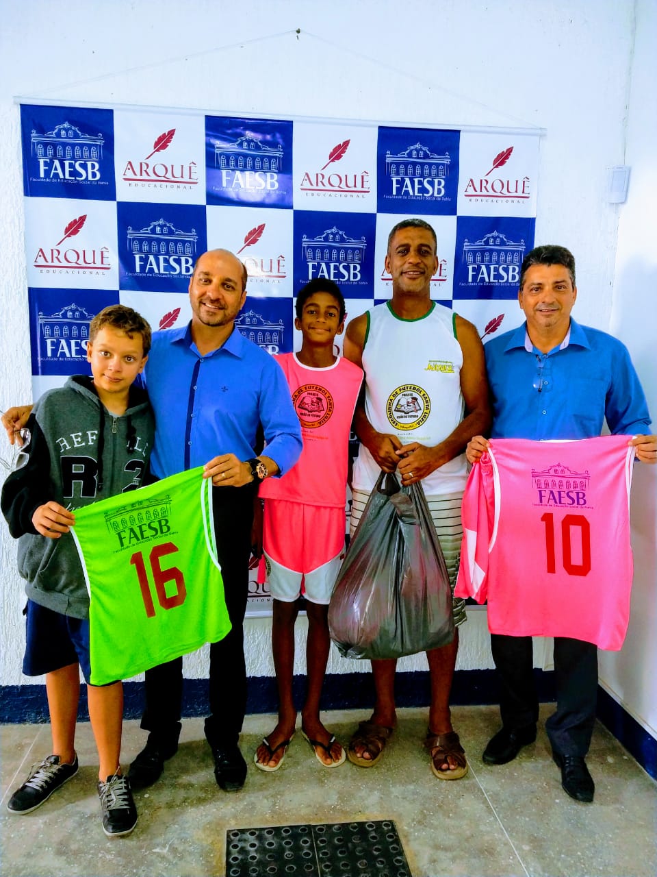 A Arquê Educacional sociedade mantenedora da Faculdade FAESB realiza doação de fardamento esportivo (Coletes e shorts) para a Escolinha de Futebol Santa Luzia organizada pelo professor Bira. Participam do projeto Social crianças e adolescentes de diversos bairros da cidade ,como Novo Horizonte, Jacaré , Bolívia e outros, pois acredita-se que a educação também se faz através do esporte. O projeto conta com o apoio de empresas, Instituições de Ensino e profissionais voluntários em diversas áreas.  Você pode ajudar a fazer uma Valença melhor, participando desse projeto social. Entre em contato com a Faculdade FAESB para apoiar esse projeto. (75) 3641-3509