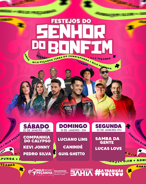 De 20 a 22 de janeiro, Nilo Peçanha estará mais bonita e feliz, celebrando com seu povo e visitantes de toda região, o seu padroeiro Senhor do Bonfim.