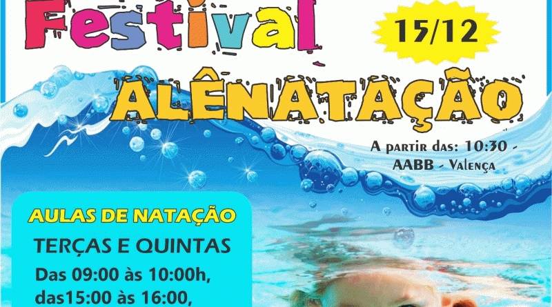 O Grupo Alê Natação promove mais uma edição do Festival Alênatação, neste domingo (15), na AABB, em Valença. O campeonato será a partir das 10h30.