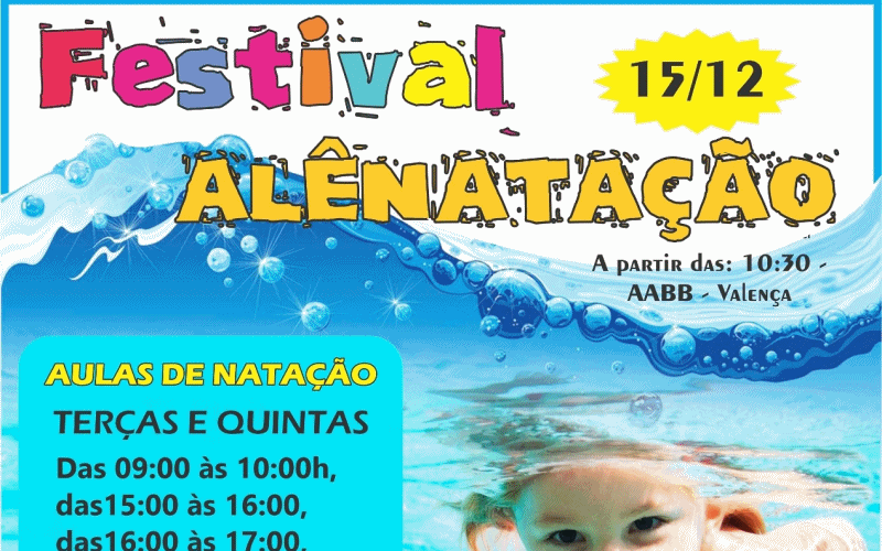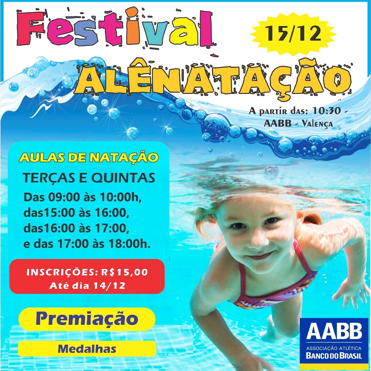 O Grupo Alê Natação promove mais uma edição do Festival Alênatação, neste domingo (15), na AABB, em Valença. O campeonato será a partir das 10h30.