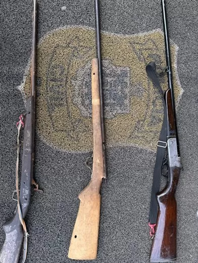 Durante a operação de captura, as equipes policiais apreenderam três espingardas com os suspeitos. Por isso, pai e filho também foram autuados em flagrante pelo crime de posse irregular de arma de fogo.