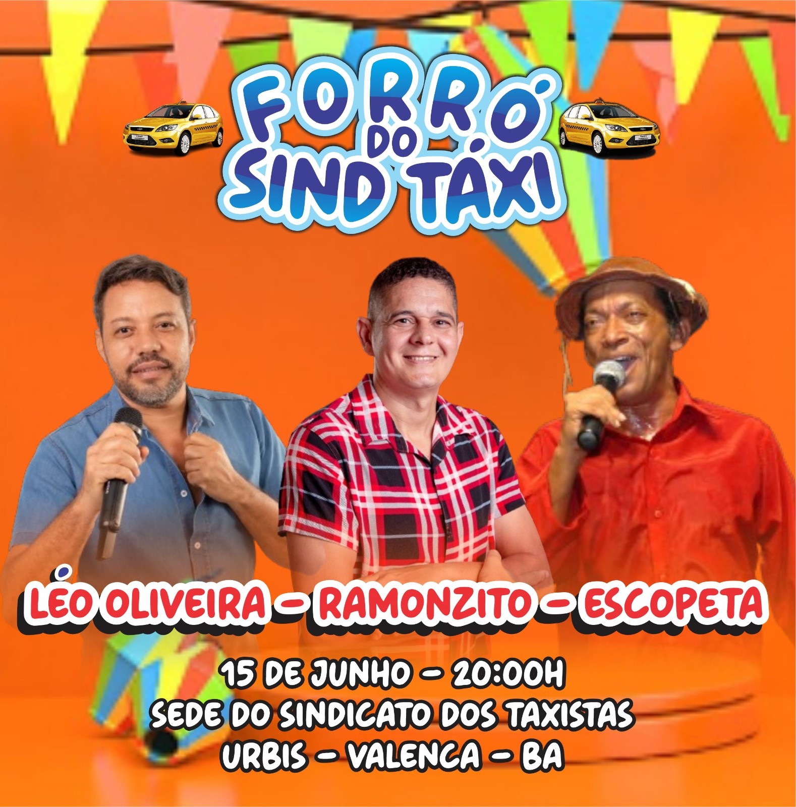 Neste sábado (15), ás 20h, o sindicato dos taxistas realizará mais uma vez, o Forró do Sinde-Taxis, na sede do sindicato dos taxistas , localizada no bairro da Urbis em Valença. Tendo como atrações ,os cantores Leo Oliveira, Ramosito e Escopeta.
