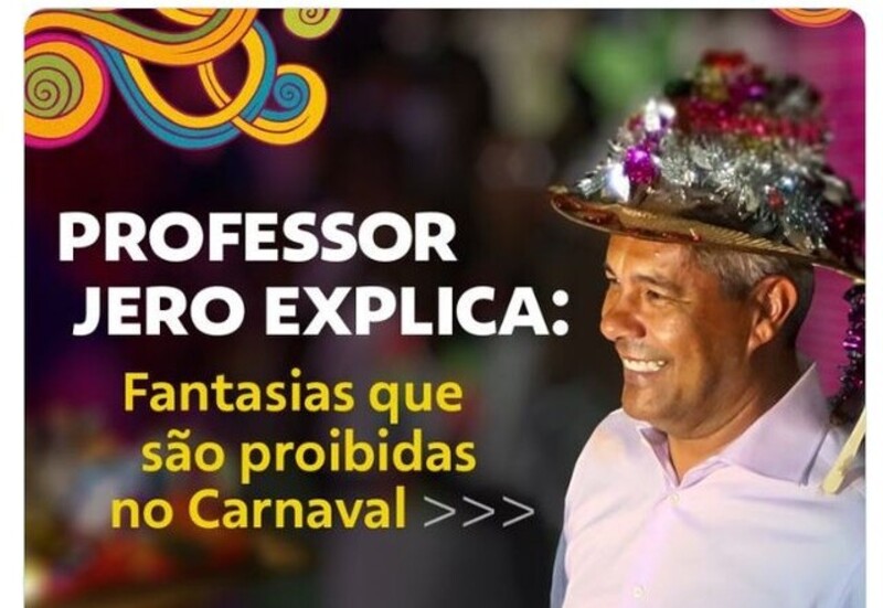 O governador da Bahia, Jerônimo Rodrigues, aproveitou a formação como professor para “dar a letra” e falar de fantasias que são “proibidas” no carnaval, por causa da ofensa às pessoas que fazem parte de grupos minoritários em direitos sociais.