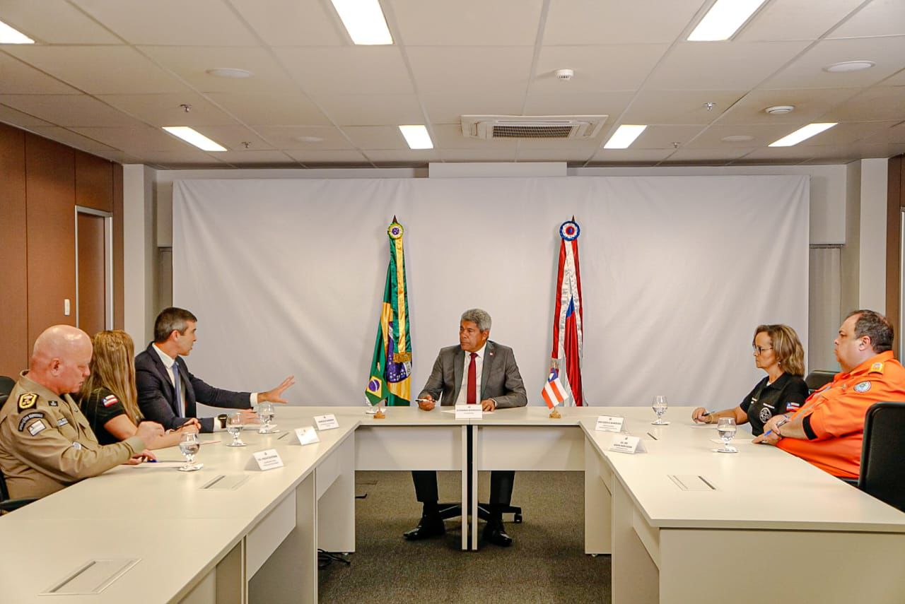 Em reunião com os chefes das forças de segurança da Bahia, o governador Jerônimo Rodrigues fez um pronunciamento aos baianos e baianas, para reafirmar o trabalho firme do Governo do Estado no enfrentamento à violência, ressaltando o compromisso e a dedicação das polícias.