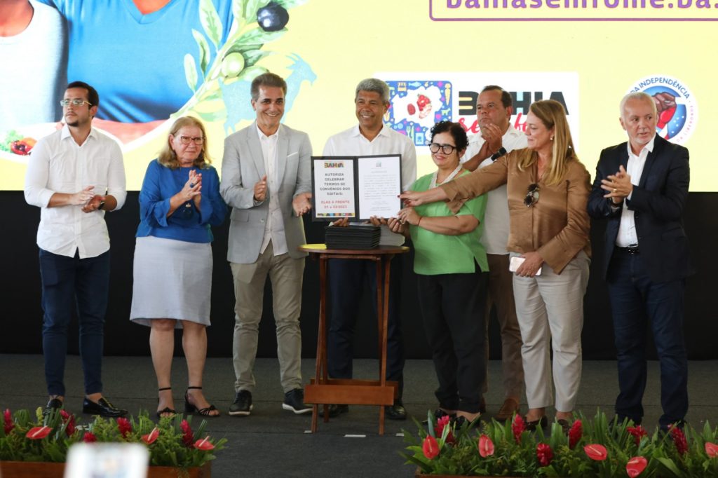 A Secretaria de Políticas para as Mulheres (SPM) assinou convênios com 12 entidades selecionadas pelo edital Elas à Frente 01/2023 -“Chefas de Famílias Monoparentais”; e 41 entidades dos edital 02/2023 – Elas à frente pelo fim da violência. Ainda foi anunciada a doação de mil toneladas de alimentos arrecadados e as ações de qualificação profissional, no âmbito dos Programas Qualifica Bahia e Trilha, executadas pela Secretaria do Trabalho Emprego Renda e Esporte (Setre).