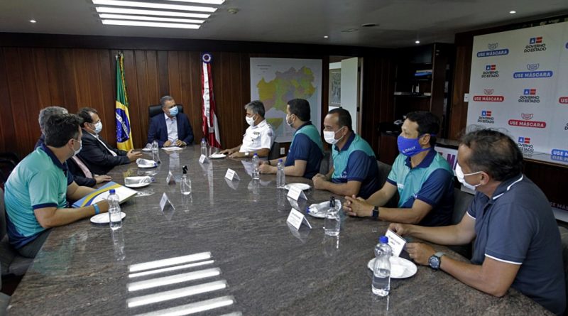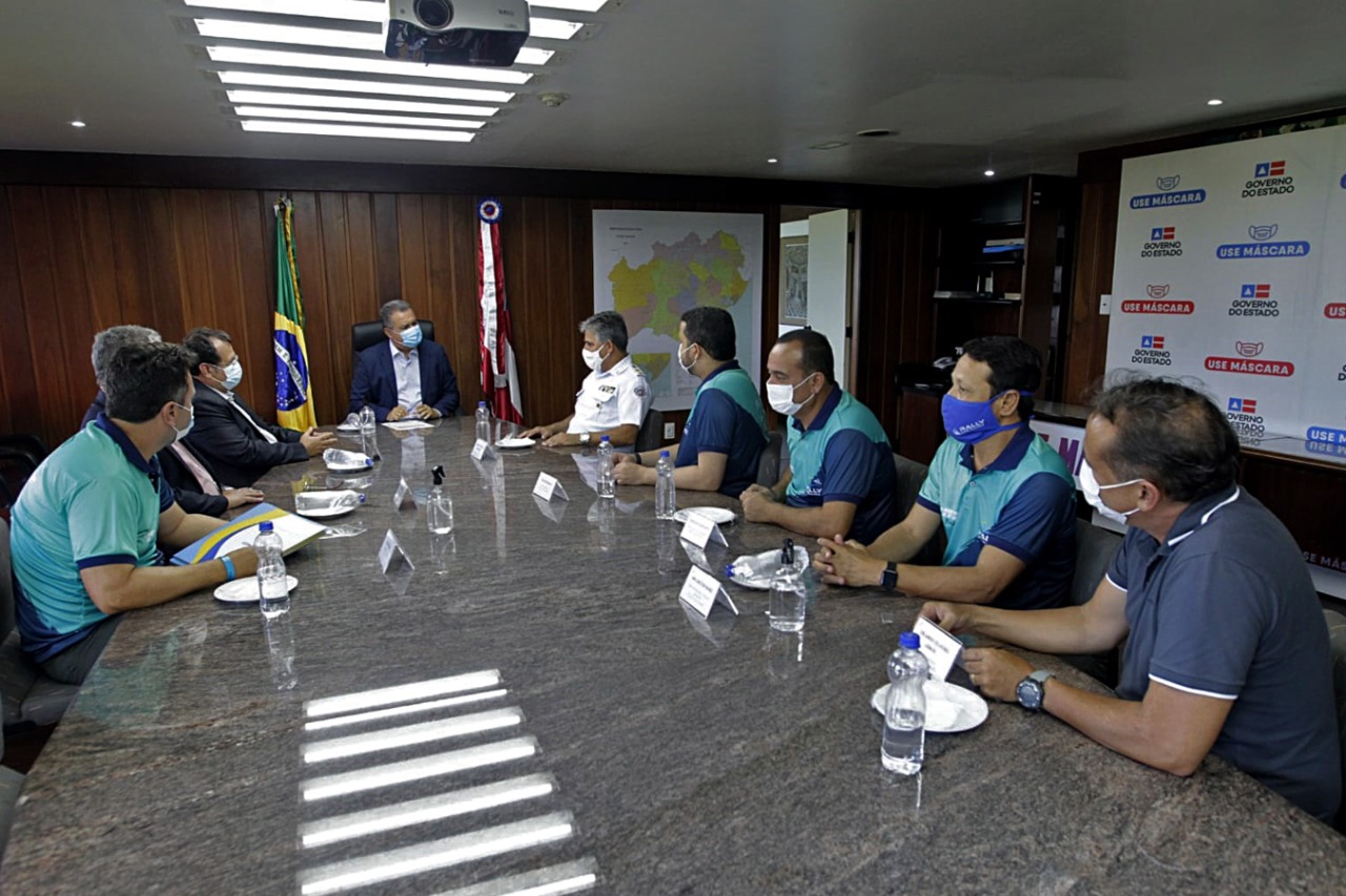 O governador Rui Costa se reuniu, nesta segunda-feira (31), na Governadoria, em Salvador, com diretores da competição de motos aquáticas ‘Rally dos Mares’, para agradecer o apoio dado por participantes do evento no resgate de centenas de pessoas desabrigadas pelas enchentes, durante as fortes chuvas que atingiram o sul da Bahia, em dezembro de 2021.