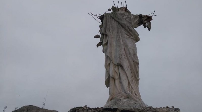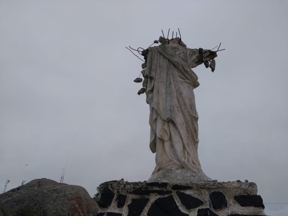 Após ser vandalizada, a imagem perdeu a cabeça e os braços. Só permaneceu o tronco, com as ferragens de sustentação à mostra. Uma cruz que também estava instalada no monte, próximo à escultura, foi atacada pelo homem, que tentou a derrubar, deixando-a inclinada.