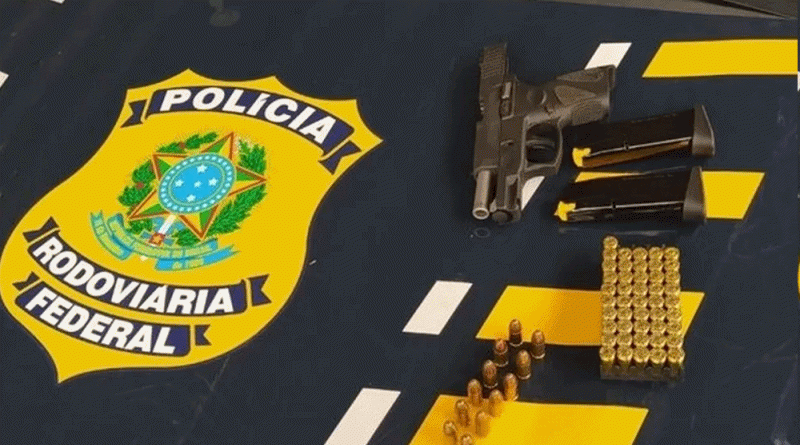 O homem preso estava em uma caminhonete de luxo. Ele e os amigos foram parados durante uma fiscalização da Polícia Rodoviária Federal. Durante a revista, os policiais perceberam que ele, que não teve nome divulgado, tentou se desvencilhar da arma de fogo, que estava na cintura.