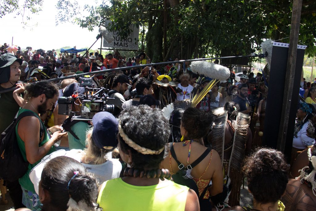 “Escolhemos a caminhada para gravarmos as principais cenas, incluindo as finais, por ser uma região onde existem em torno de 20 aldeias do território indígena Tupinambá de Olivença. Fizemos os registros dos rituais que ainda seguem sendo realizados na aldeia Tukum Tupinambá, em Olivença. São rituais que reúnem os indígenas locais e de outras regiões, como Pataxó Hã-Hã-Hãe, que vêm para fortalecer a luta” observa Gal Solaris, cineasta e uma das diretoras do filme junto com a líder indígena Nádia Akawã Tupinambá. O longa-metragem tem a previsão de ser lançado no segundo semestre de 2025.