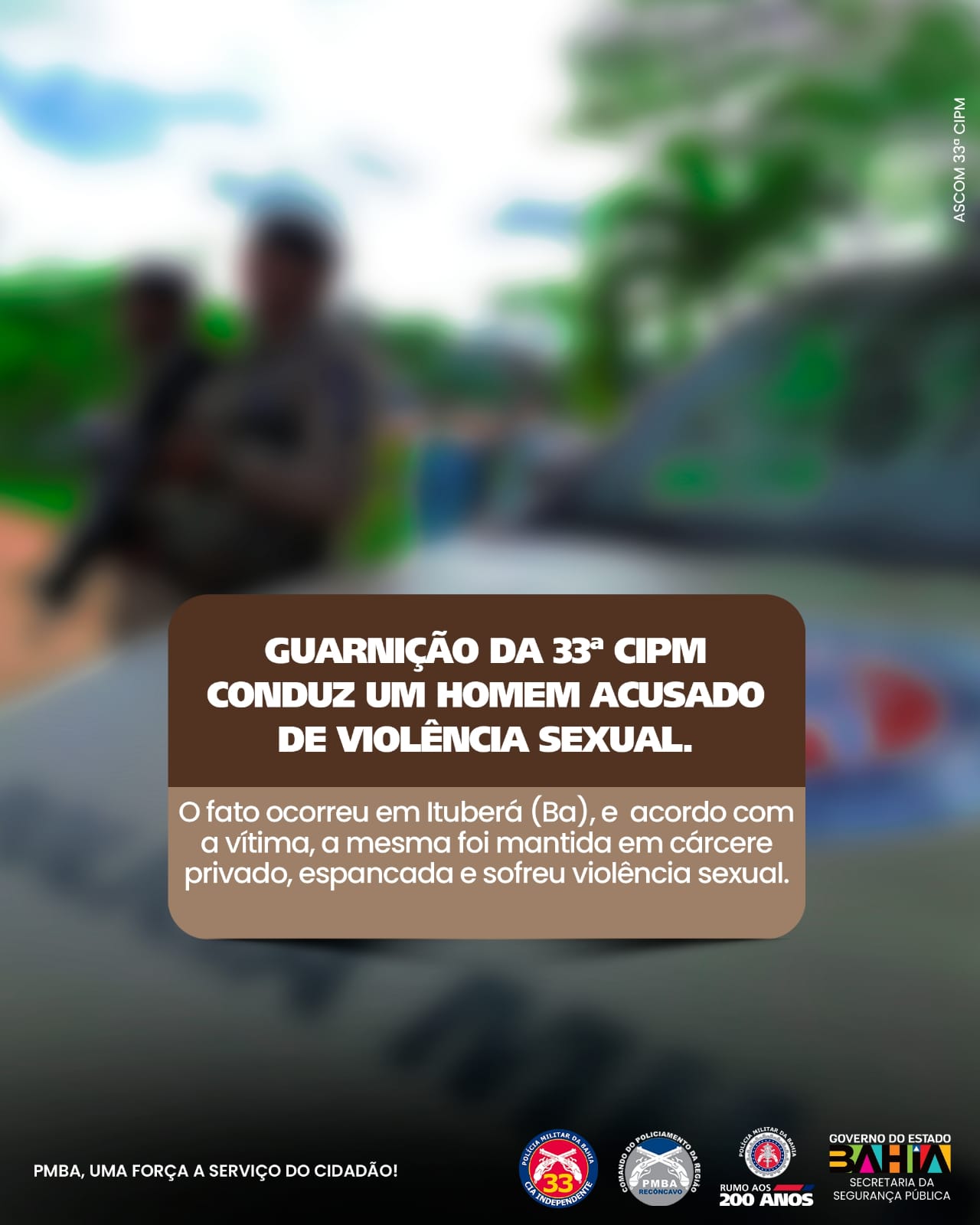 Ituberá: 33ª CIPM conduz um homem acusado de violência sexual