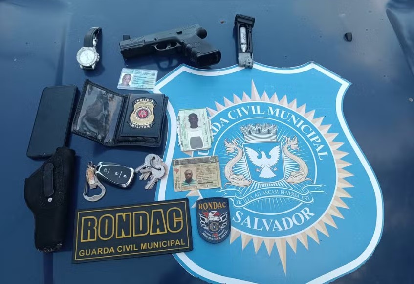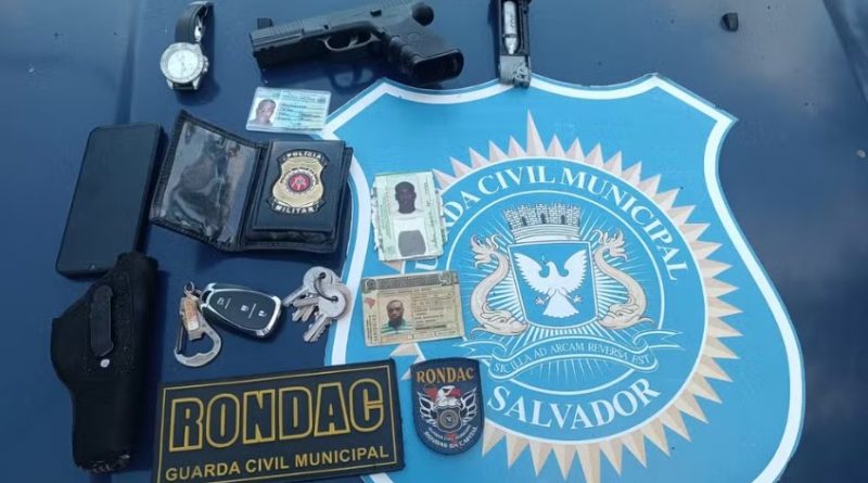 Segundo a Guarda Civil Municipal, o “comportamento suspeito” do homem chamou atenção dos guardas que faziam patrulhamento preventivo no local. Ao abordá-lo, os agentes de segurança encontraram a arma falsa e o jovem fingiu ser policial — ele apresentou a carteira falsificada com o brasão da PM.