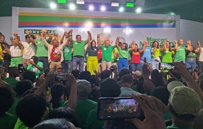 Multidão comparece à convenção que confirma Marcos Medrado para prefeito e Lorena para Vice