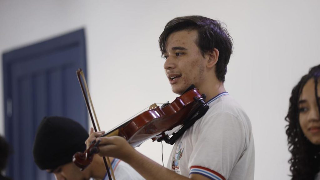 O estudante do 3° ano, líder estudantil e musicista, Leonardo Lima Prates, 17, diz que está muito feliz com um novo espaço, principalmente com o novo teatro, onde poderá praticar a música no contraturno. “Quando cheguei na escola, ela estava em fase de construção e ficávamos em um único espaço, mas agora vemos a diferença do novo espaço, os alunos ficam mais espalhados, realizam atividades ao ar livre, praticam esporte na quadra, no campo, com certeza, isso estimula bastante”, aprovou.