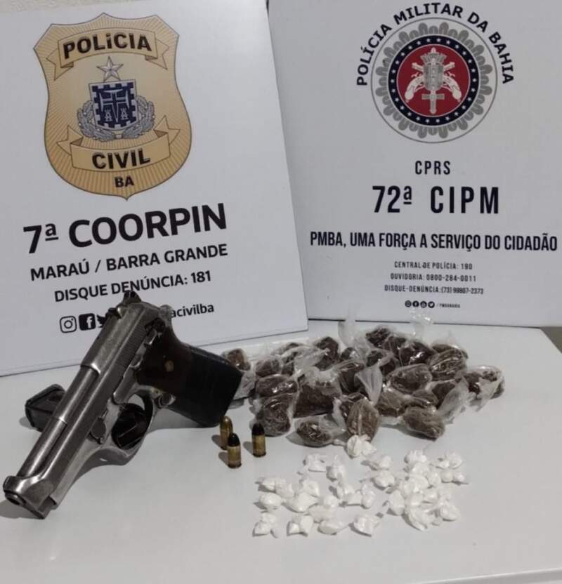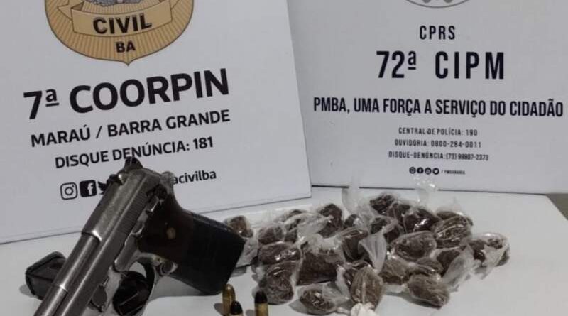 Na manhã desta terça-feira, 30/05, foi deflagrada uma ação conjunta da Polícia Civil de Maraú e da 72ª Companhia Independente da Polícia Militar no distrito de Barra Grande, na praia de Taipu de Fora. Após um trabalho de investigação da Polícia Civil é Polícia Militar, obteve-se a informação que um homem, apontado como chefe do tráfico de Taipu de Fora, juntamente com outros suspeitos, estariam planejando o homicídio.